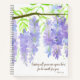 Un nom personnalisé carnet personnalisé décoré d'un glycine en pleine floraison, illustré d'aquarelle et accentué de taches d'aquarelle. Sur le devant se trouve un verset de la Bible encourageant du livre de 1 Pierre 5:7. Au fond, une autre vue de la branche de la glycine et une zone où vous pouvez customiser votre nom et l'année. Baptême de charme