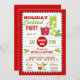 L'amusement et les motifs et la typographie de fête fait une invitation animée à votre cocktail de vacances/Noël ! Des boissons dans toutes les formes et tailles sont décrites avec le houx de vacances et les motifs checkered dans cette conception rouge, verte, noire et blanche. Martini rouges et verts, un verre de highball complètement des glaçons de flocon de neige et d'un bâton de cocktail de sucre de canne et une torsion de gui - amusement, cocktails de fête pour attirer vos invités pour vous joindre en rendant joyeux !