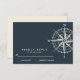 Conçu pour correspondre à nos invitations de mariage et accessoires The Blue Compass ce mariage nautique chic RSVP présente une illustration de boussole dessinée à la main de style vintage en bleu marine. Parfait pour les mariages de plage, d'été ou de nautique. Cette conception fait partie d'une collection, veuillez visiter notre magasin pour les articles correspondants. Pour une demande personnalisée, veuillez nous contacter à l'adresse citronelladesign@gmail.com