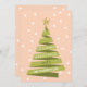 This modern holiday card fea graphic ribbon Christmas tree and can be personalized with the year and family name. The the der ticket shape has a hole punched at the top that can be used to add a ribbon embellishment.