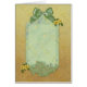 Pâle - arc vert de satin et dentelle sensible sur un arrière - plan floral jaune avec un espace vide pour customiser une salutation