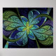 La Chanteuse IV, abstract art by Susan Wallace. Copyright © 2010, Susan Wallace. Faux stained glass leaves of green and turquoise frame a central flower in shades of blue and purple.Designed to fit standard size frame.