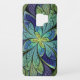 Samsung Galaxy S3 case with "<a href="http://www.zazzle.com/skellorg/gifts?cg=196642292318499104" title="More items with this design">La Chanteuse IV</a>," an abstract Apophysis fractal by Susan Wallace. Copyright © 2010, <a href="http://www.zazzle.com/skellorg/about">Susan Wallace</a>. Faux stained glass leaves of green and turquoise frame a central flower in shades of blue and purple.