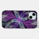 Coque-partenaire design coque iphone de "La Chanteuse Violett", une fractale de l'Apophyse par Susan Wallace. Copyright © 2014, Susan Wallace. Les feuilles de vitraux dans les tons violets, argentés, perwinkle et violet brillent dans cette pièce abstraite complexe une fleur centrale de violet éclatant.
