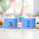 A blue owl wearing a chef's hat, and French text reading La Chouette Bleue (The Blue Owl); the logo of the bakery and cafe. Delicious baked delights and food from the United Kingdom, Europe and around the world. Stop in and see us. Customise by adding your own text on the reverse side.