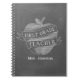 Un carnet de notes à spirale comportant une craie a inspiré l'illustration d'une pomme couverte de bannière qui indique de la "le PROFESSEUR PREMIÈRE CATÉGORIE" au-dessus d'un arrière - plan inspiré par tableau. Personnalisez avec votre nom.