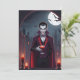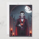Plongez dans l'esprit d'Halloween avec notre carte de vœux « Le plaisir de Dracula » ! Ce design présente un Dracula charismatique, vêtu de sa cape noire signature et d'un costume élégant, debout devant un château gothique sous une pleine lune. Avec un sourire sournois et des yeux rouges brillants, Dracula vous invite à rejoindre les festivités effrayantes.