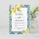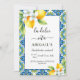 La Dolce Vita Mediterranean bachelorette weekend invitation. Get ready to celebrate in style with the brand new La Dolce Vita Mediterranean bachelorette weekend invitation! This beautifully crafted invitation serves as a delightful prelude to a weekend of sun-soaked fun and Italian-inspired festivities. The design is a testament to the beauty of the Mediterranean, showcasing a stunning blue and yellow tile pattern that instantly evokes the charm of the region. Elegant blooming branches, overflowing with bright yellow lemons, artistically frame the upper left and bottom right corners, adding a touch of sophisticated whimsy. The combination of lemons and flowers not only creates a visually pleasing aesthetic, but it also embodies the warmth and citrusy freshness synonymous with the concept of "La Dolce Vita," which, as you know, translates to "the sweet life" in Italian. Let this invitation be your first taste of the unforgettable experience that awaits.