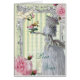 La Lettre D’amour is a truly romantic French inspired shabby chic collage. Featuring many beautiful vintage images including a decorative frame, a wonderful fashion plate from the 18th Century depicting the gowns worn by the Ladies of the Court of Versailles., roses, butterflies, a dove and of course a love letter in an urn filled to the brim with roses. All of these images have been laid on top of a back ground of pale French green. © Wickedly Lovely