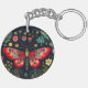 Un papillon rouge vibre contre l'arrière - plan d'un mystérieux jardin de nuit.