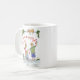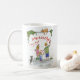 Tasse blanche avec des enfants écrivant des messages d'appréciation pour leur papa sur un mur. Deux chats regardent.