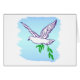 Une colombe de paix vole à travers un ciel bleu diffusant un message de la paix et de l'harmonie tenant une branche d'olivier verte. Cliquez sur la personnaliser il pour sélectionner des polices, ajoutez la couleur d'arrière - plan, ajoutez votre nom ou message et plus.