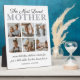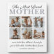 Plaque photo de jour de la mère moderne avec le mignon dicton "la mère la plus aimée", 6 photos des enfants, leurs noms, et la légende "les mères tiennent la main de leurs enfants pour un petit moment, mais leur coeur pour toujours".