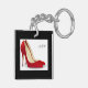 La pompe rouge chic de talon haut chausse le porte-clés d'initiales de monogramme. Une paire de stylets rouges est montrée sur un arrière - plan blanc avec une frontière noire, et des initiales personnalisées élégantes. Très chic et maintenant. Pour tout amant de chaussure ou diva de chaussure ! Les options, personnalisent ou suppriment des initiales, ou changent le style des textes de police de tous les deux ou de l'un ou l'autre côté.