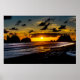 At the Quileute Oceanside Resort in La Push, Washington, looking North along the shore at dusk. A beautiful bright sunset through a few clouds, and the shoreline rocky bluffs, including James and Little James islands, in the dark with the pine trees silhouetted against the sky. Some people sitting in the shadows enjoying the view. Please feel free to use the design tool to fit the image to your preferred size.