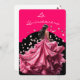 This modern style 5x7 size invite is shown created in Hot Watermelon and Black colour scheme with a young lady.