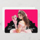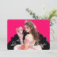 This modernistic style 5x7 invite is shown created in Hot Watermelon and Black colour scheme with White text.