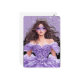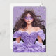 This modern style 5x7 size invite is shown created in a purple and black colour scheme with a young lady.