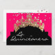 This modern style 5x7 size invite is shown created in Hot Watermelon and Black colour scheme with tiara.