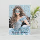 This modern style 5x7 size invite is shown created in a blue and black colour scheme with a young lady.