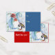 Peinture originale couleur pastel en bleu blanc, bonhomme de neige et pingouin jouant du violon dans la neige hivernale avec des fleurs rouges, fleurit.par Bulgan Lumini (c)