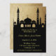 faire-part de mariage avec silhouette mosquée et or damas motif motif