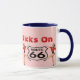 UNE TASSE CONÇUE AVEC DE RÉTROS IMAGES DE JUMEAUX DE "ÉRUPTIONS" D'AMUSEMENT ET AVEC, "OBTIENNENT VOS ÉRUPTIONS SUR" UNE CONCEPTION POUR HONORER LA NOSTALGIE LIÉE AUX VACANCES ET NATURELLEMENT À L'ITINÉRAIRE 66 DE VOYAGE PAR LA ROUTE ! ! DANS LE TÔT À MID-1990, J'AVAIS L'HABITUDE D'UTILISER FRÉQUEMMENT L'ITINÉRAIRE DE L'ITINÉRAIRE 66 EN LE SÉLECTIONNANT TUCUMCARI, AU NOUVEAU MEXIQUE ET EN LUI PRENANT L'EST VERS CHICAGO. AU MILIEU DE LA NUIT, UNE STATION DE RADIO AU NOUVEAU MEXIQUE JOUAIT UN ENREGISTREMENT DE L'HISTOIRE DE L'ITINÉRAIRE 66 AVEC LA VOIX DE RICARDO MONTALBON FAISANT LA NARRATION. ABSOLUMENT UNFORGETABLE… ET SI VOUS AVEZ EU L'OCCASION DE L'ENTENDRE, VOUS SAVEZ CE QUE VEUX DIRE JE :) VÉRIFIEZ SVP MON MAGASIN POUR VOIR QUE CECI "DONNE UN COUP DE PIED" LA CONCEPTION OFFERTE SUR UNE SÉRIE DE PRODUITS DE ZAZZLE ! ! APPRÉCIEZ LA VIE, PRENEZ UN VOYAGE PAR LA ROUTE, ET LES MERCIS DE L'ARRÊT PAR ! !