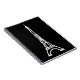 The Eiffel tower. White stylized illustration. The background colour is customizable