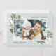 D'élégants cartes photos de vacances botaniques placent vos photos horizontales ou orientées paysage préférées avant et centre, accentué par des ressorts botaniques verts, feuillage, feuille et lis blanc des fleurs de la vallée, sur un arrière - plan vert sauge pâle. Ajoutez votre salutation de Noël personnalisée (illustrée par "Holiday Cheer"), et votre signature familiale. Un carte photo de vacances élégant et festif qui saura plaire à tous sur votre liste de cartes de Noël cette saison!