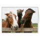 Deux chevaux et une mule agissant idiote, réellement passant par la routine priante pour un peu de pomme. Carte photo.