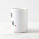 White mug with black text and a small red heart