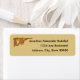 Bracket with look of wrought iron. Graphic image of right angle bracket, with three leaves of varying sizes, sits in upper left corner. Personalize with name and address to the right. Image is dark red/brown on tan background.