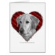 Une salutation sincère pour des Chien d'arrêt-amants de Labrador la Saint-Valentin, le jour de mère, la fête des pères ou tout jour. Un portrait normalement détaillé de Sam, un laboratoire jaune, dessiné par l'artiste Susan Donley saute hors d'un coeur satiny pour partager son amour.