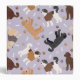 Cute Labradoodle / Goldendoodle dogs sit and stand and rollover with cream, apricot, chocolate, black and parti coats with scattered dog bones and pawprints pattern.