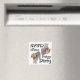 This magnet features a Labradoodle. Text reads: "Dishes are Dirty". Turn this magnet up-side-down and the Labradoodle is featured with this text: "Dishes are Clean". Great for that animal lover in your life! Looking to adopt a new best friend? Please visit petfinder.com to save the life of a shelter/rescue animal near you.