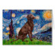 Starry Night de Vincent Van Gogh, adapté pour inclure un Labrador Retriever au chocolat.
