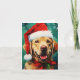 Colourful and joyful Christmas design with a Labrador wearing a Santa hat.