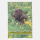 This kitchen towel is adorned on with a close up photograph of a chocolate Labrador Retriever lying in a California Poppy patch. Fill in the template fields with your name, initials or click customize to select a font style, size, and colour you like.