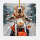 Labrador Dog Riding Motorcycle Christmas Ceramic Ornament