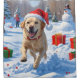 A joyful Labrador Dog runs through the snowy landscape, wearing a festive red Christmas hat. The lively winter scene reflects the breed’s playful energy, loyalty, and warm personality while celebrating the festive spirit of the holiday season. A heartwarming design filled with seasonal charm.