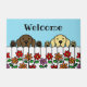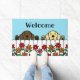 Labrador Duo Watching You Welcome Doormat for Labrador Fans! Innocent looking Chocolate Labrador and Yellow Labrador are watching you behind the flowerbed and they look like they want to say something to you! Whimsy and funny Labrador Retriever Dog Cartoon created by Naomi Ochiai from Japan.