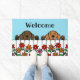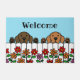 Labrador Duo Watching You Welcome Doormat for Labrador Fans! Innocent looking Chocolate Labrador and Fox Red Labrador are watching you behind the flowerbed and they look like they want to say something to you! Whimsy and funny Labrador Retriever Dog Cartoon created by Naomi Ochiai from Japan.