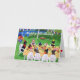 This is my second card I bought from same artist.I bought another one with dogs in bakery! Anyone who loves dogs, would love this card and the idea of dogs eating at a table, and making it look fun. There was a lot of detail with the burgers dogs expressions how their sitting,different colored dogs, and balloons. There is a wagon in the background with a few dig toys in it and when you get the card you can see it in bigger size and tiny details of the teddybear frog balls. Its nice how she picked the dogs outdoors picnic and water in background too. This comes in birthday or plain blank for even a Summer Card picnic, or even 4Th of July,with the colors of the red white blue flags. very creative. Note card is great size for a birthday bigger than average and lettering for Happy Birthday is nice in white, brightens the card.