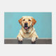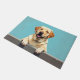 The soft ocean blue background adds a refreshing and welcoming feel, perfect for entryways. Designed with extra space at the top and bottom, it allows easy personalization with names, welcome messages, or custom text—making it ideal for unique dog-themed doormats and thoughtful gifts.