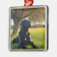 This ornament features a black Labrador retriever. Can be used on a Christmas tree, as a pet memorial or just an any day decoration.