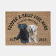 Labrador Retriever Personalized Dog lover welcome doormat. This welcome mat can be personalized with your dog’s name, the slogan can also be changed or you could use a picture of your own dog (make sure it's transparent). Text reads: Cooper & Sally live here…. All treats welcome
