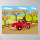 Labradors and Red Truck Fall View Poster for Labrador Fans!! Four Labradors are on the way home from their Dream Farm! They have their apple trees there. Three Yellow Labrador Retrievers and A Black Labrador Retriever are painted in the picture. Created by Naomi Ochiai.