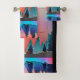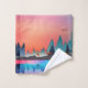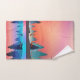 Serviette avec un design graphique magnifique avec un lac paisible avec des cerfs. et de grands pins se reflétant dans l'eau. Les étoiles planent au-dessus.