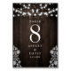 Lace And Wood String Lights Rustic Wedding Table Number. Easily personalize this custom design with your own wedding details.