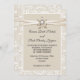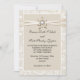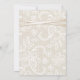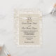 Lace border with beige ribbon wedding invitation that features ecru and white lace border, a satin ribbon and a flower with metallic shine and printed jewel diamond and your text in black on sand beige colour. This customizable template design is full of chic elegance and finesse. It is part of a wedding set perfect for a wedding with a neutral palette.